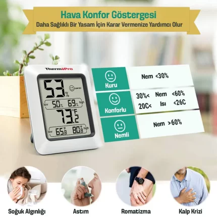 Yaşam alanlarınızın nem seviyesini kontrol altında tutun. ThermoPro'nun hassas nem ölçerleriyle sağlıklı bir ortam oluşturun.